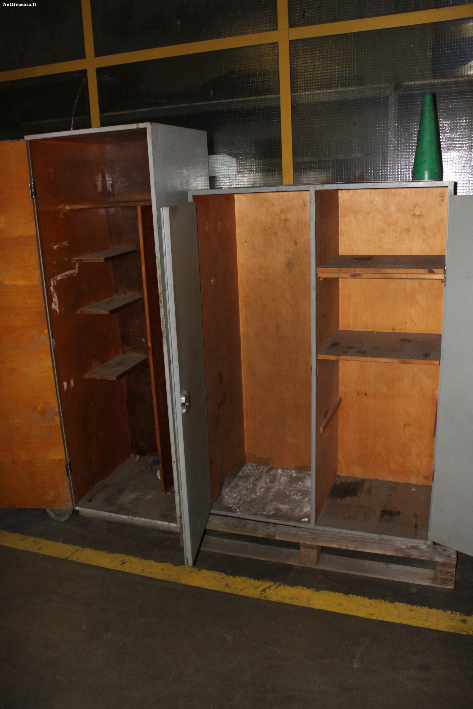 Välihyllyjä ja molemmat lukot toimii. Yksi avain.
