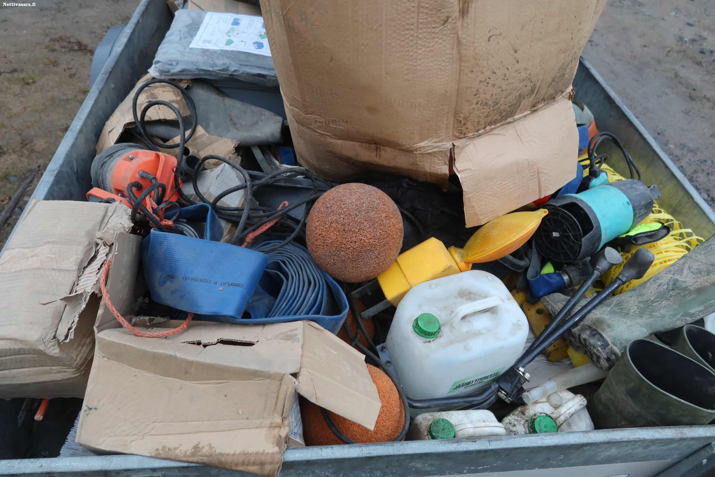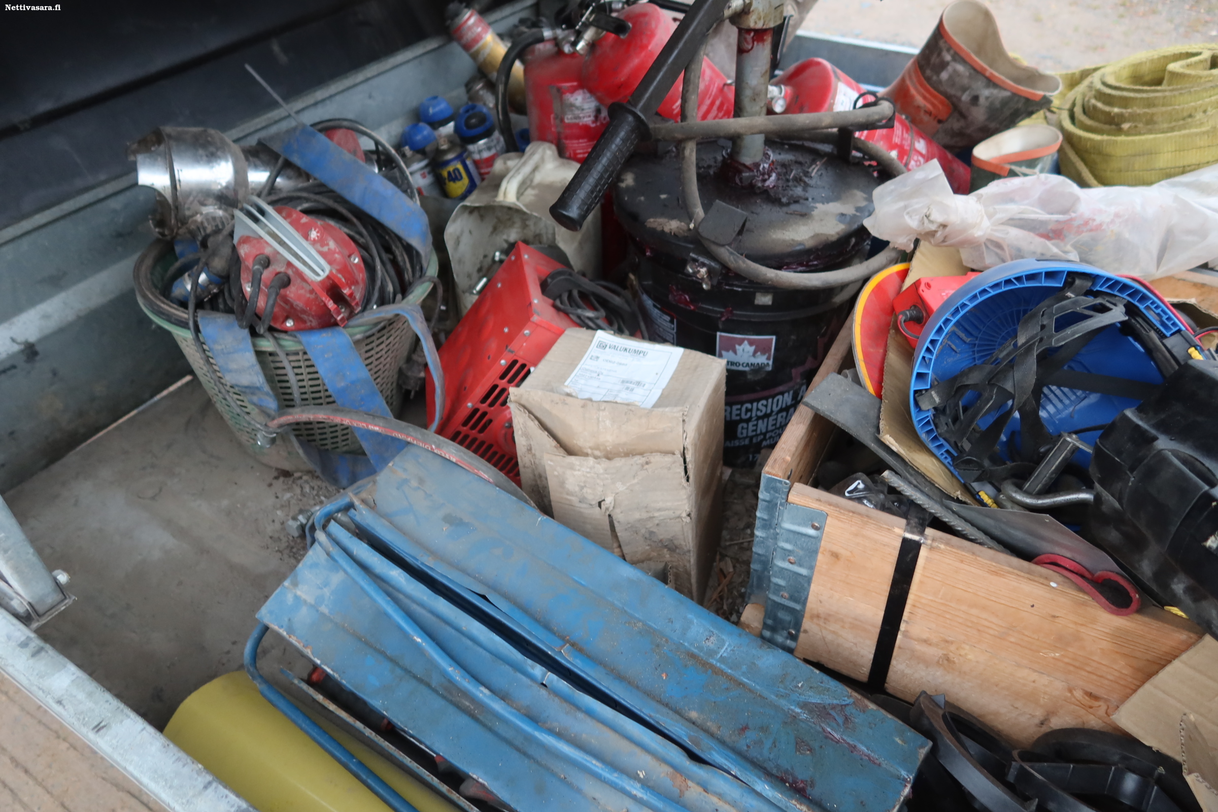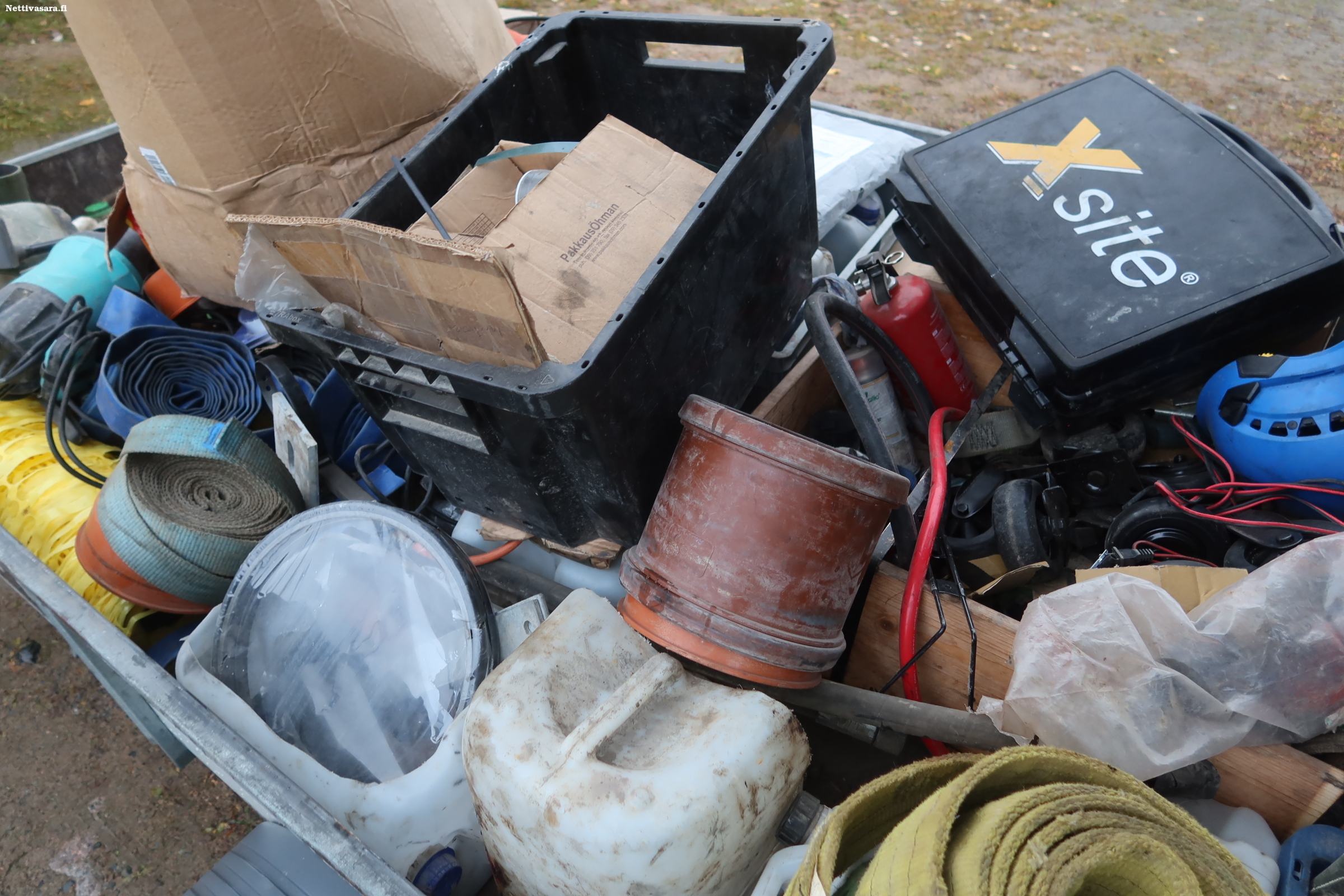 Perävaunussa erilaista käyttöomaisuutta, joka kuuluu kauppaan