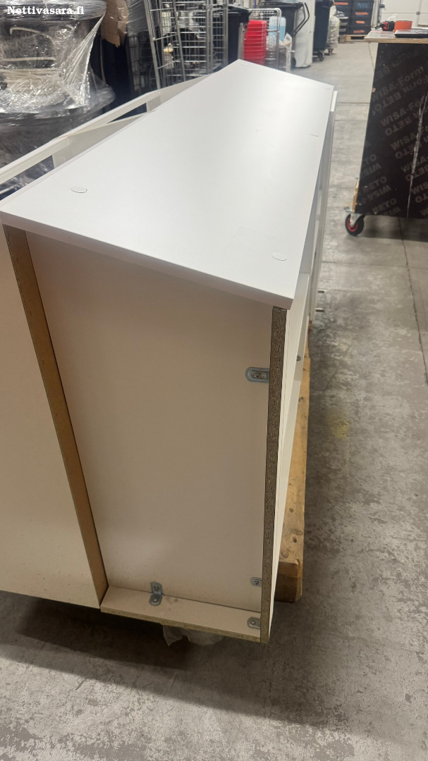 Tuote 2 uupuu sekä kansilevy, että ovet. Tuote on kertaalleen paikalleen asennettu ja irroitettu tämän jälkeen.