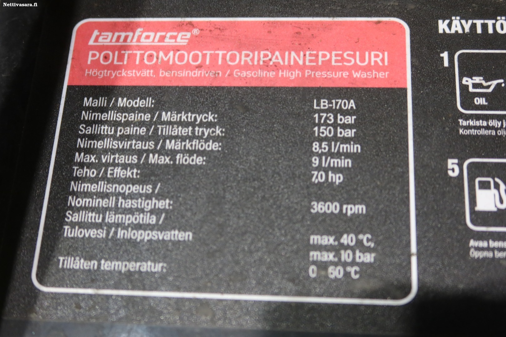 - Polttomoottorikäyttöinen painepesuri Tamforce LB-170A (6)