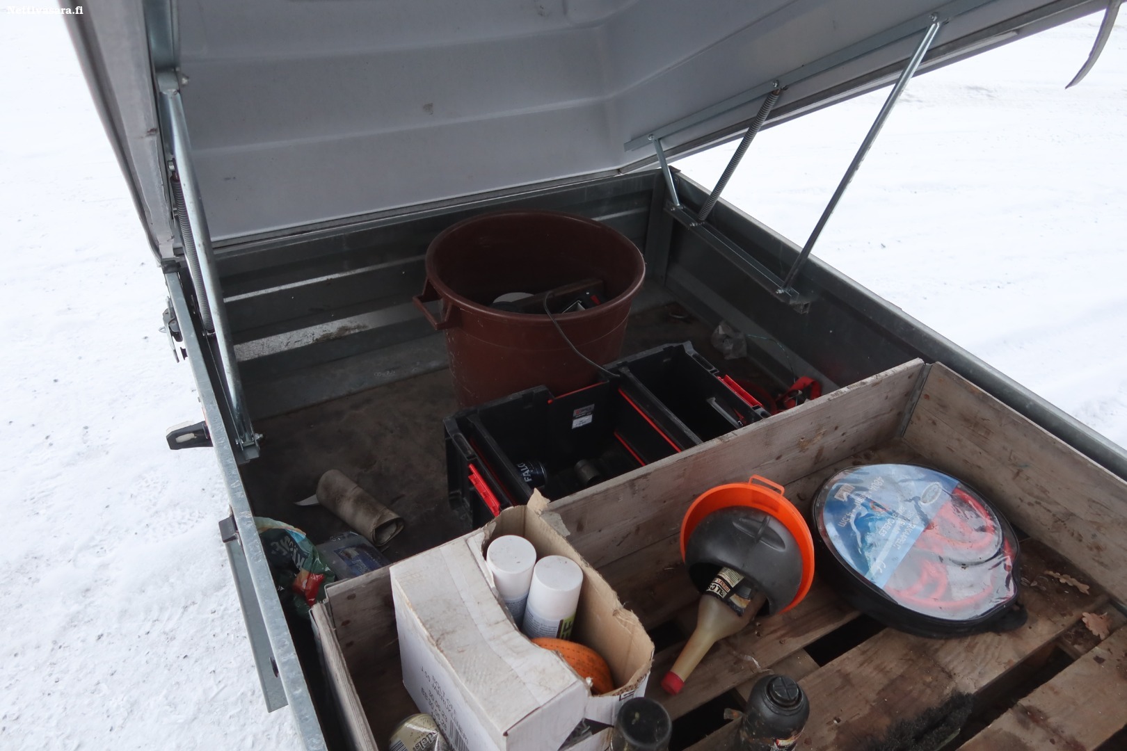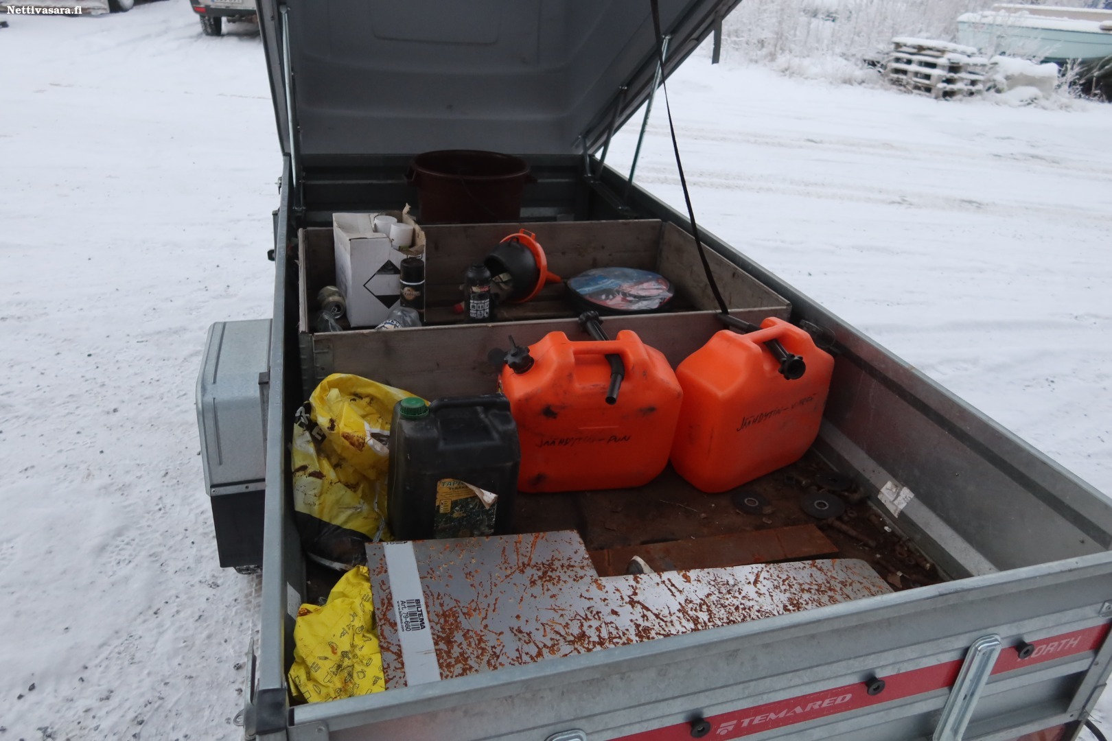 Perävaunussa oleva kuvissa näkyvä omaisuus kuuluu kauppaan