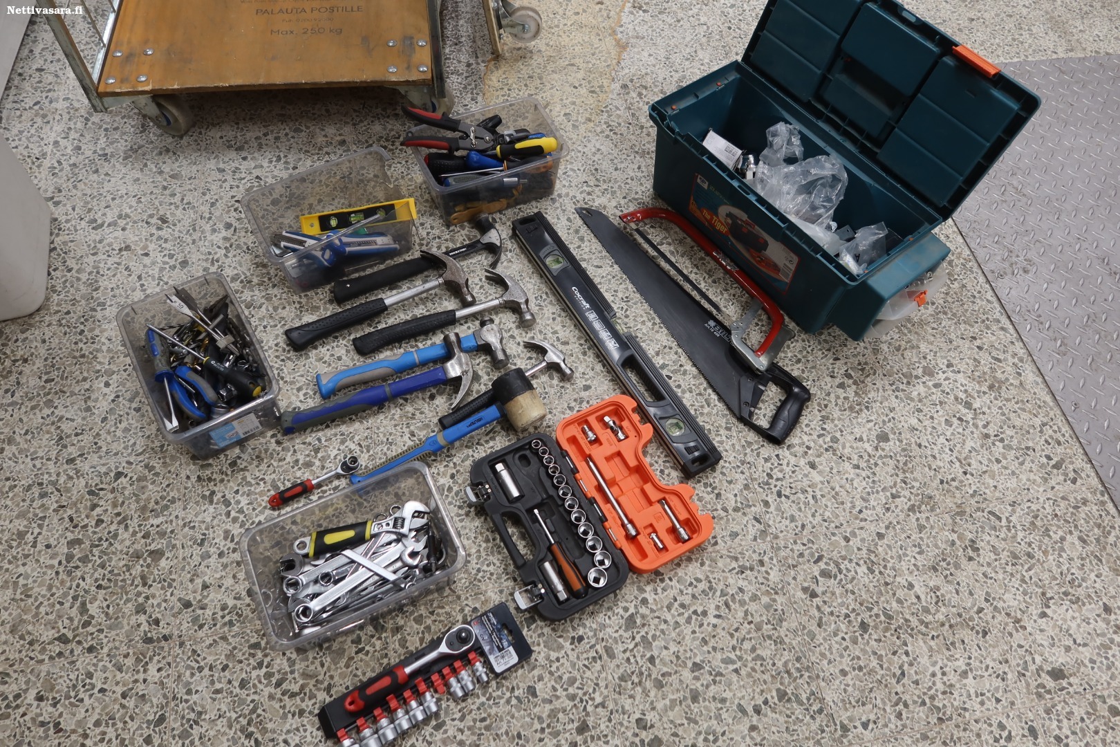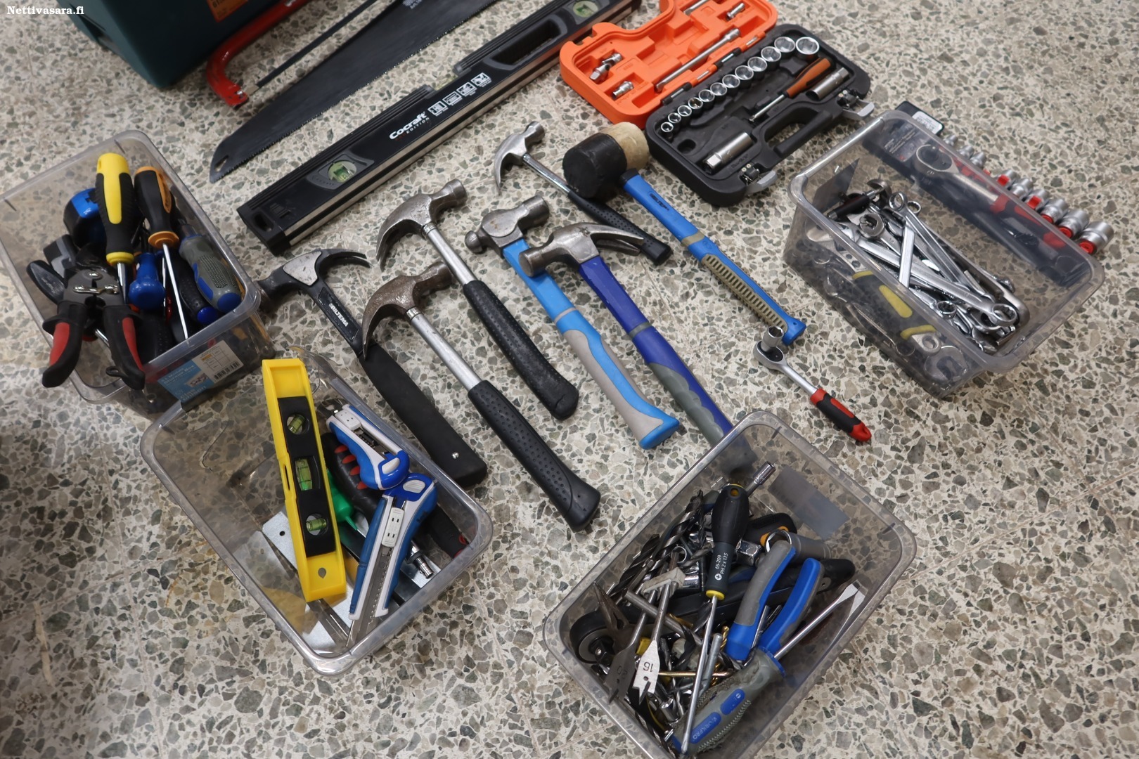Ruuvimeisseleitä , vesivaaka, käsisaha ym.