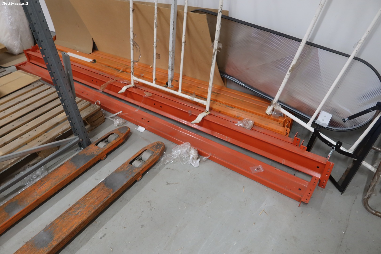 Kuormalavahyllyt pitkälle lavalle 4-hyllyväliä sisältäen: