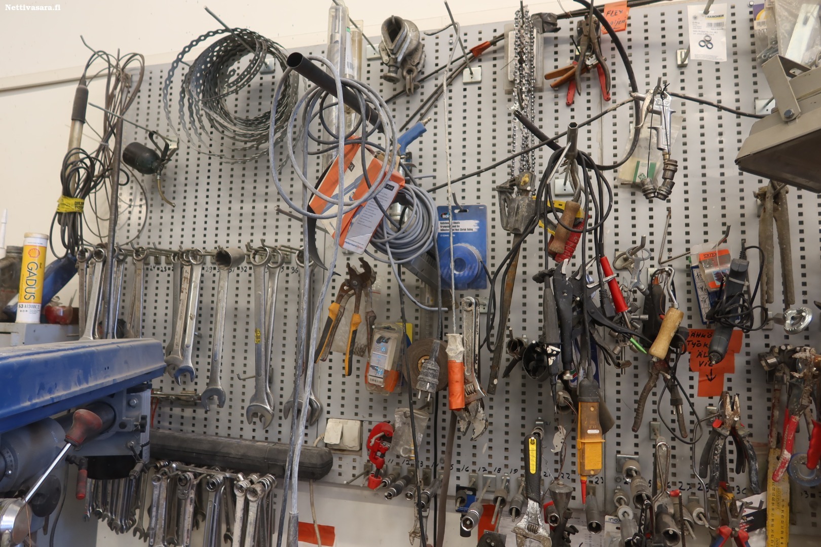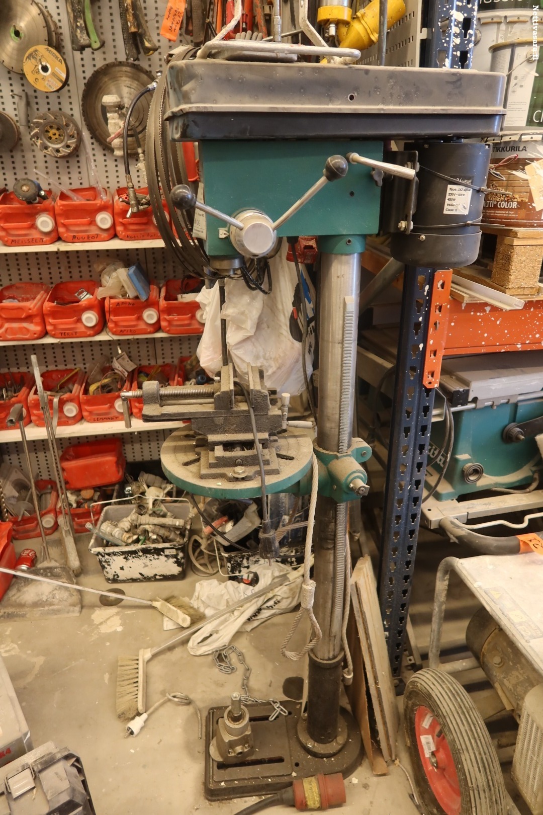 - Työkaluseinä ja pöytä sissältöineen, pylväsporakone (81)