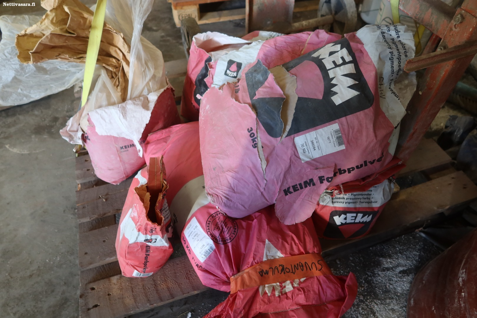 Lavalla olevat sementtipussit kuuluvat kauppaan