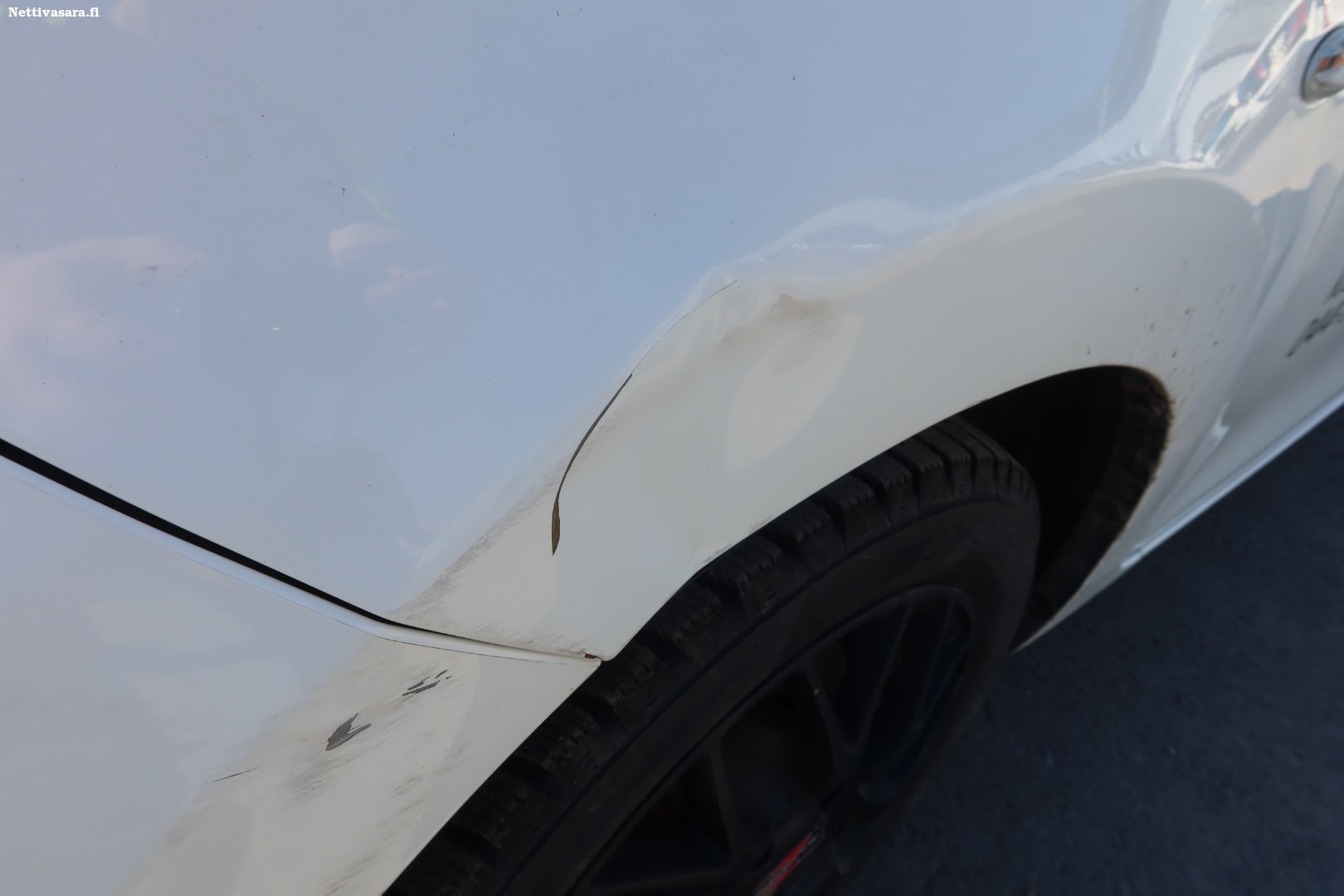 Tuulilasi rikki, tapapuskuri halki, etupuskuri halki, vaihdekepin nuppi rikki