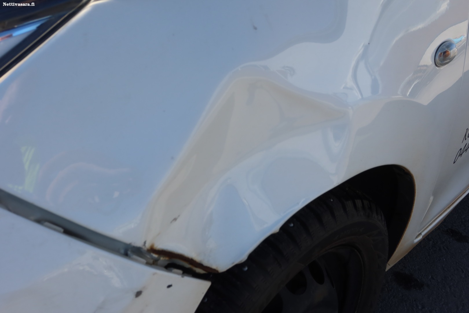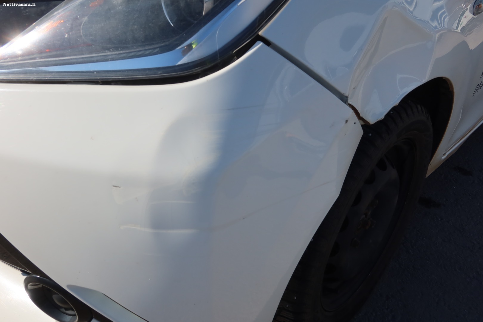 Etupuskurissa ja vasemmassa etulokasuojassa vaurioita