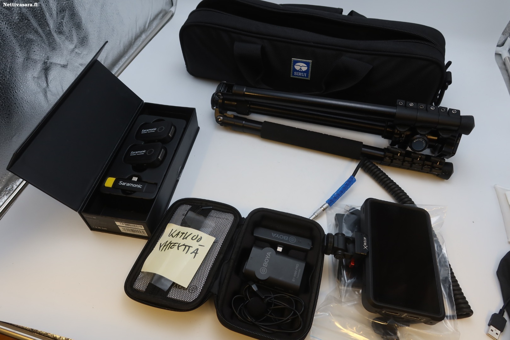 Käytettyjä kameratarvikkeita sisältäen: