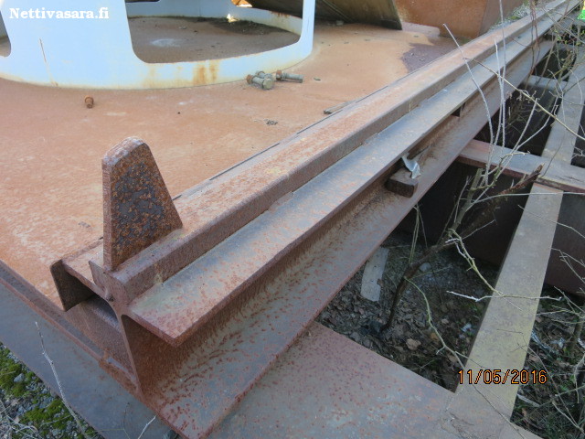 Mukaan lisäkiskot (p. 620, l. 27,5 k. 25cm ), kiskojen kokonaispituus lisäkiskojen kanssa n. 1090cm